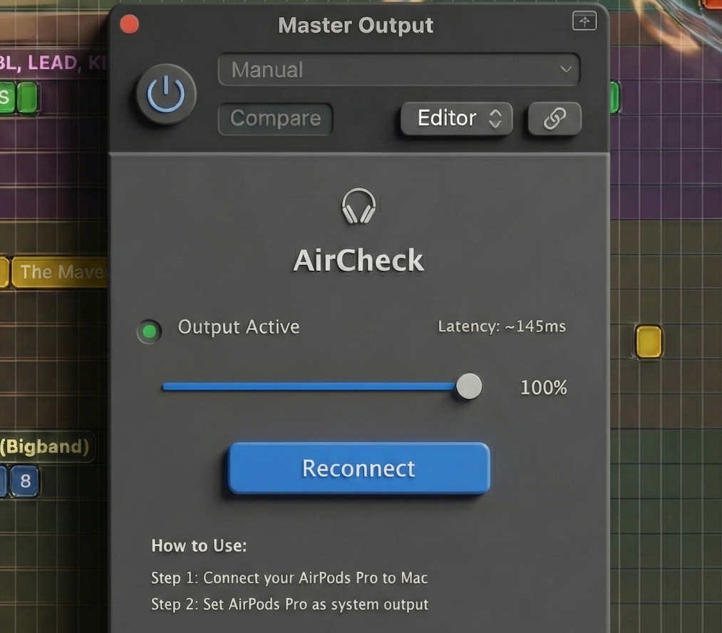 AirCheck allows you to route audio from any DAW (AU/VST3) directly to your AirPods, or mobile device in real-time, Low Latency. It’s the ultimate tool for instant reference checks and remote timestamped notes, all without changing your DAW audio device settings. *Pro Tools (AAX) Version is not yet supported.